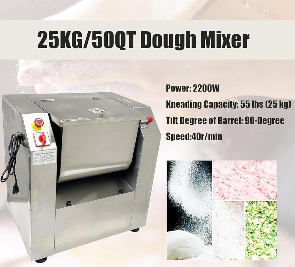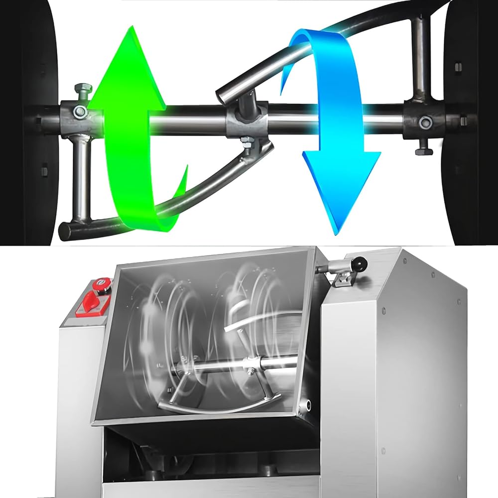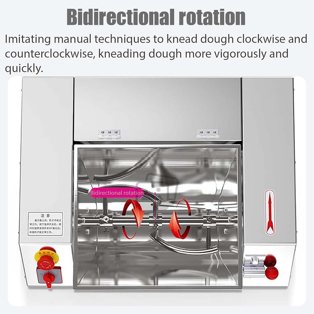 Versatile Application & User-Friendly Features: Suitable for a wide range of culinary applications, including mixing flour and water for dough, blending vegetables and meat, and dumplings, and noodles. Equipped with an emergency stop switch and forward and reverse modes, this mixer offers powerful functionality and control for the discerning chef.
