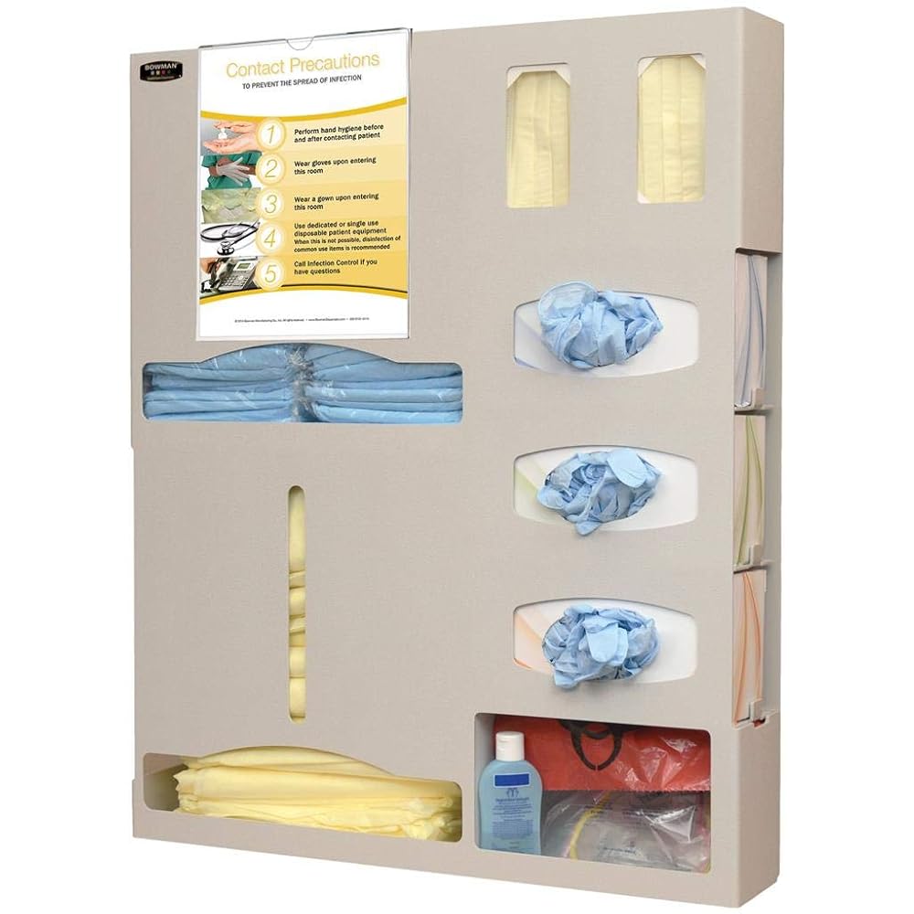 Protective Wear Isolation Bundle Holds Gowns, Coveralls, Gloves, Masks, and misc Items Wall Mount or on a Bowman® Hanger 8.5"x11" Signage Included Dims: 5.08"L x 25.15"W x 30.98"H