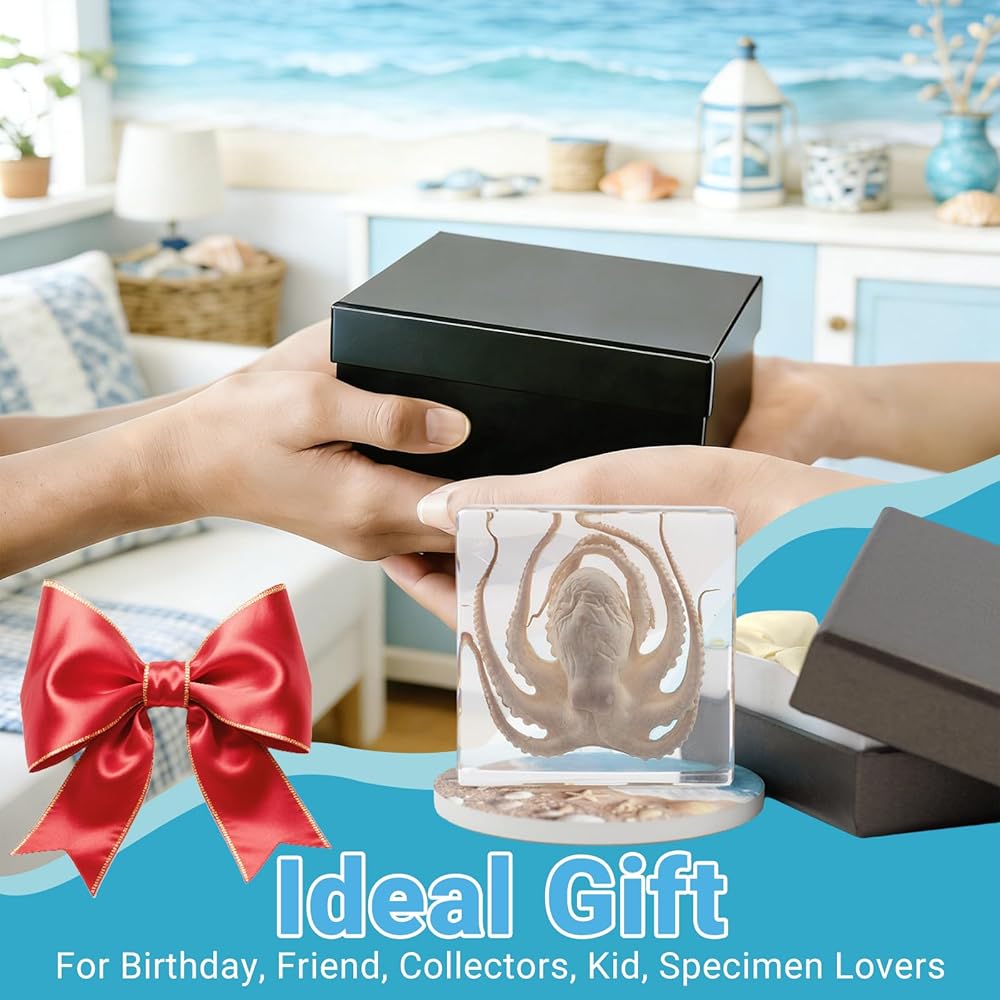 Ideal Gift: This octopus specimen is a perfect marine-themed gift for friends, family, or enthusiasts of taxidermy, marine biology, or oddities. It stands out as a memorable gift blending marine biological allure with whimsical charm, a standout addition to any collection and a charming conversation starter