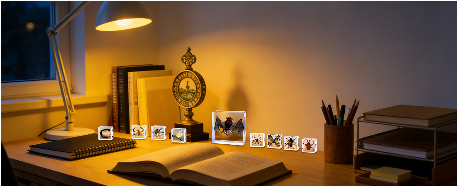 Crystal Clear, Durable Highly Visual: Our taxidermy animals preserved insects in premium crystal clear resin. designed for 360-degree viewing, revealing extraordinary detail,you can clearly see the bat's teeth and eyes etc. durable resin is suitable for years use