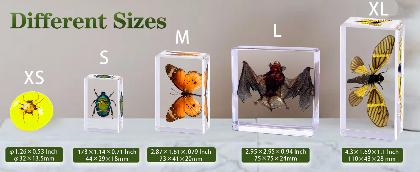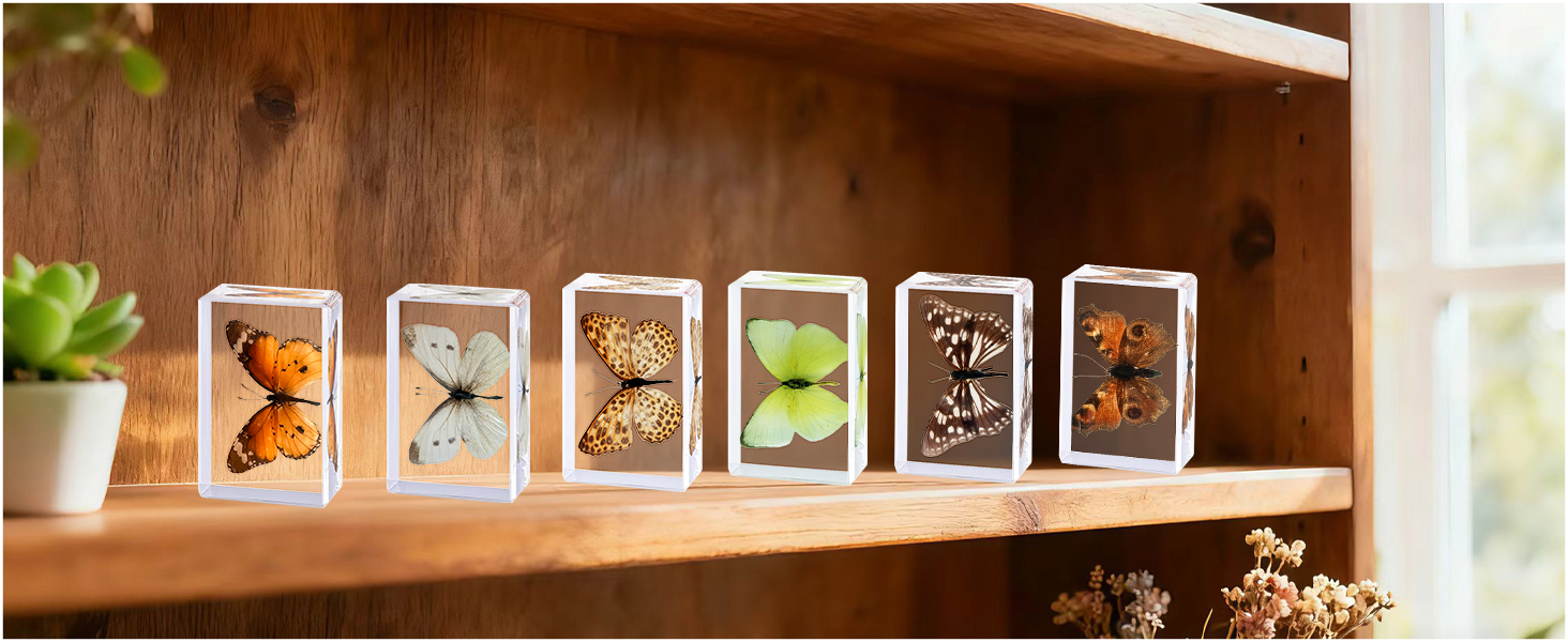 【Stable Resin Craftsmanship】Resin blocks (2.87×1.61×0.79inch) with smooth edges,durable resin casting minimizes bubbles. resists impact and maintains clarity for long-term display,the resin material helps protect the specimens. fine details, such as the delicate scales on the butterfly wings, are visible for close examination.