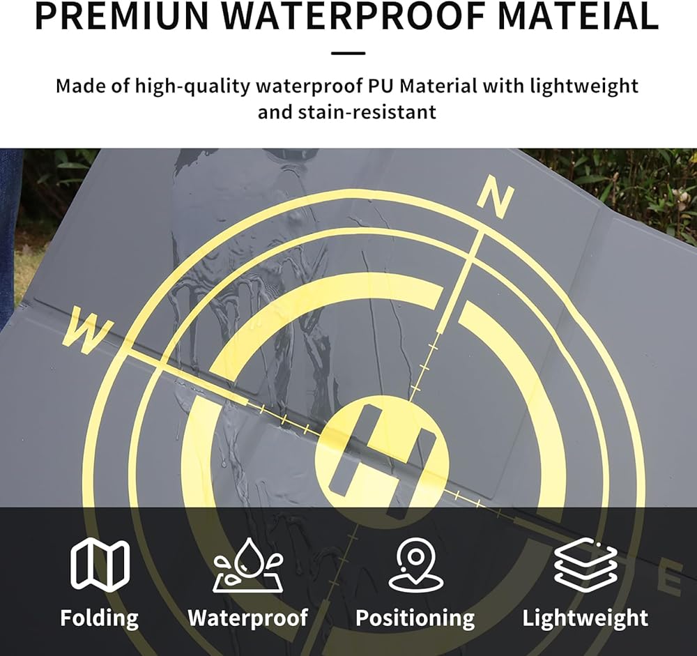 Double-sided Color Option & Portable: Double-sided color design. Better get position than black; Easy to fold and store quickly ; With a storage bag for easy storage and transport outdoors. 21.65in x 21.65in (55x55cm) size, easy to fold allows you to bring it anywhere. Help your drone find home position easy, strong enough to use on sand , overgrown grass, uneven dirt road or in the snow.