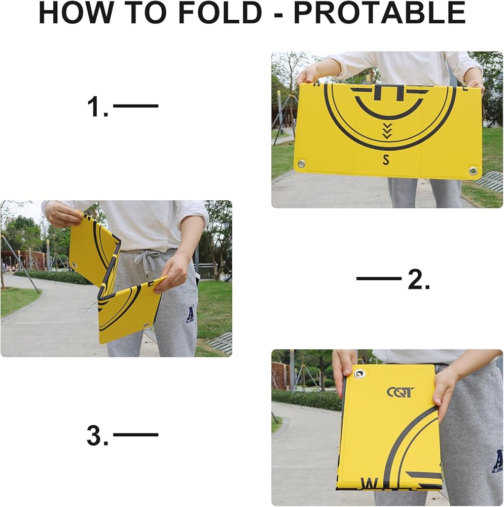 Upgraded & Universal Drone Landing Pad: The CQT 21.65 inch fast-foldable drone landing pad (compared to other lightweight or round landing pads) can provide more stable and protective take-off site and landing ground in any typical environmental condition (such as sandy land, muddy ground, low grass, pebble ground, cement ground, rubble pile, snowfield and etc) for DJI Flip, for DJI Avata 360 NEO 2 and Avata 2 Mavic 4 pro/2/3 Pro/Zoom Mini 2/SE Mini 3/4 5 Pro Air 2S/3 Spark/FPV drone Phantom series, Holy Stone , insta360 Antigravity A1 and Potensic Atom 2 2S other drones.