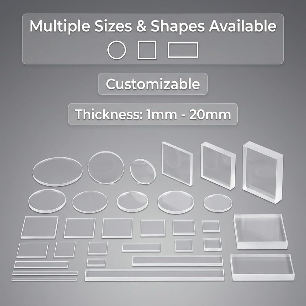 • [Optical Grade Clarity] Boasts exceptional light transmittance across a wide spectrum (UV to IR). Our quartz plates are bubble-free and scratch-resistant, ensuring crystal clear visibility for microscopy and laser applications.