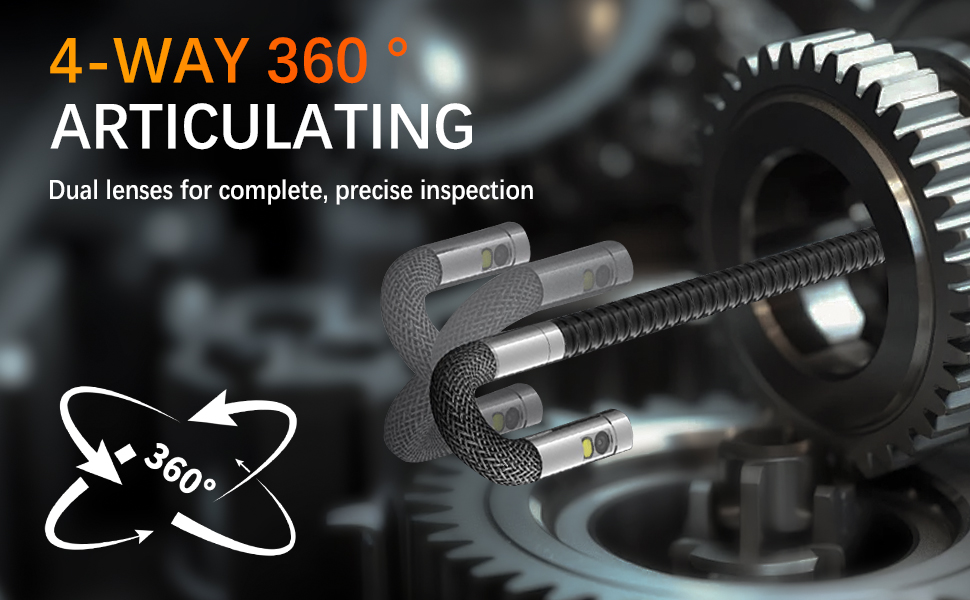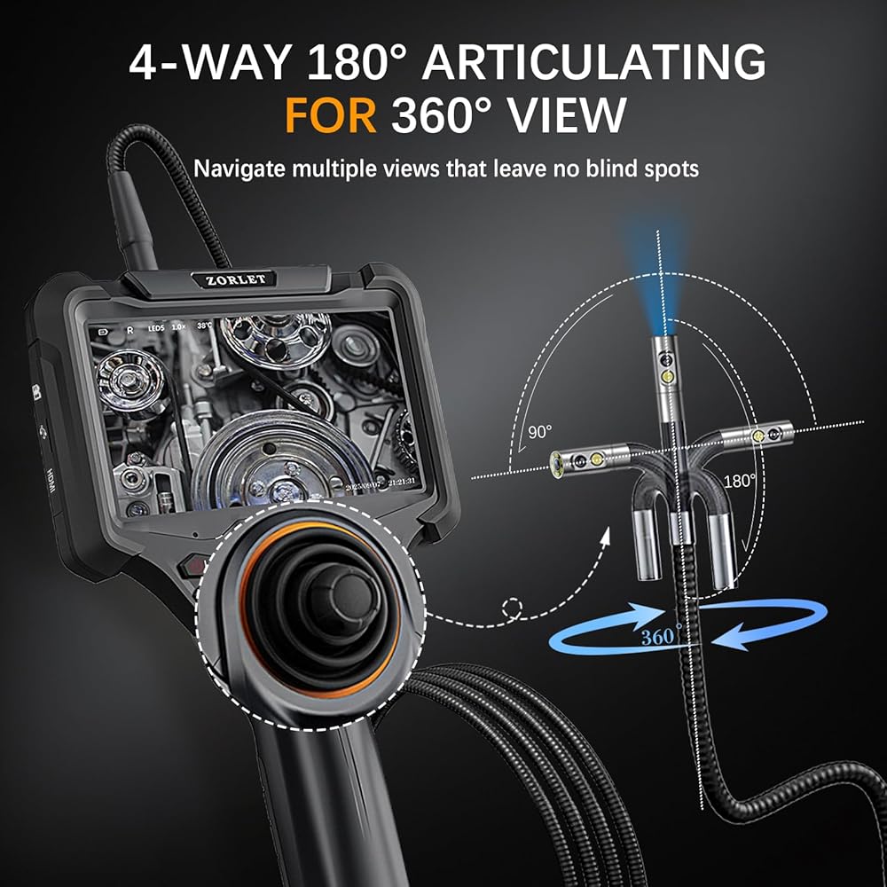 • 【4-Way Articulating Borescope – Precision Control for Any Inspection】Experience total control with this joystick-controlled articulating borescope. The 4-way probe bends smoothly in any direction, delivering a full 360° field of view inside engines, valves, pipes, and wall cavities. Inspect hard-to-reach areas without dismantling parts—saving diagnostic time, reducing repair costs, and improving efficiency across automotive, HVAC, and industrial applications.