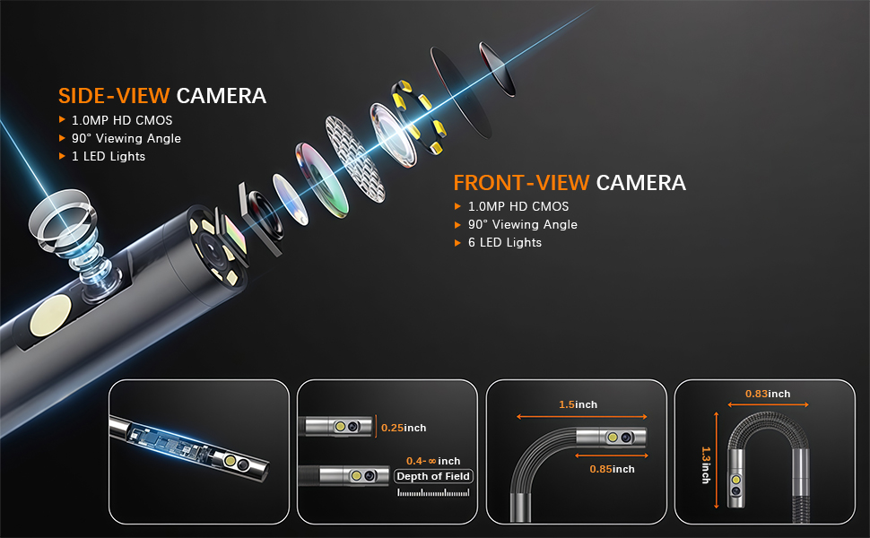• 【0.25in Slim Camera Probe with 5.0FT Semi-Rigid Snake Tube】The 6.2mm (0.25in) camera probe smoothly enters narrow or curved areas without causing damage. Its 5FT semi-rigid snake tube maintains its shape while bending, providing the ideal balance of flexibility and stability for precise, efficient inspections.