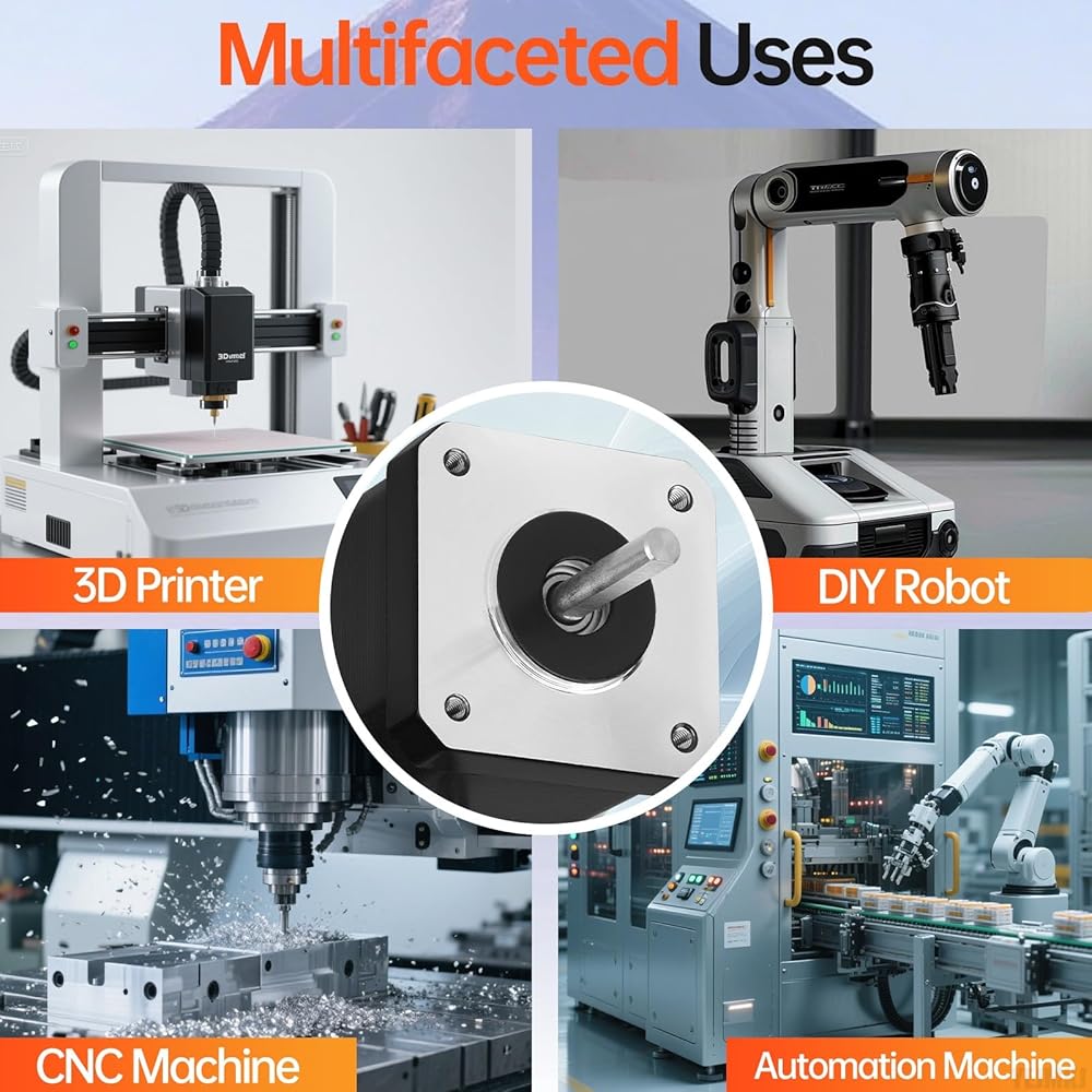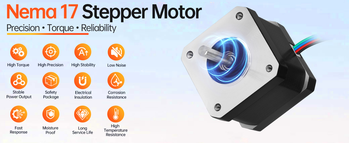 Elevate Your Equipment: Engineered for minimal noise interference, our enhanced Nema 17 Step Motor boasts up to 20% greater holding torque through its higher-grade steel core construction and optimized winding technique. Experience smoother machine cycles with less surrounding disruption.