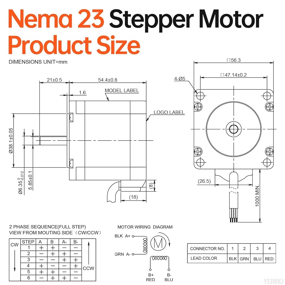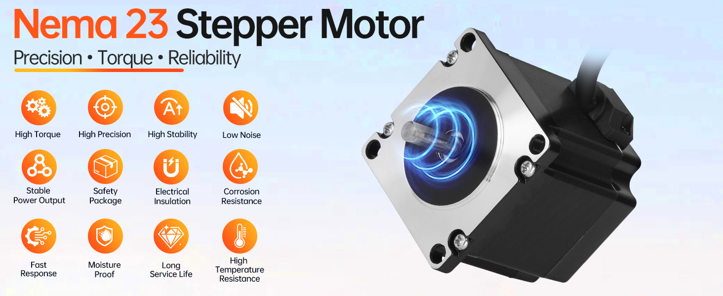 Significant Torque Upgrade: Leveraging reinforced steel cores and meticulously wound coils, this Nema 23 Step Motor offers up to 20% increased holding torque versus standard units. Benefit from a quieter operational profile and minimal environmental disturbance.