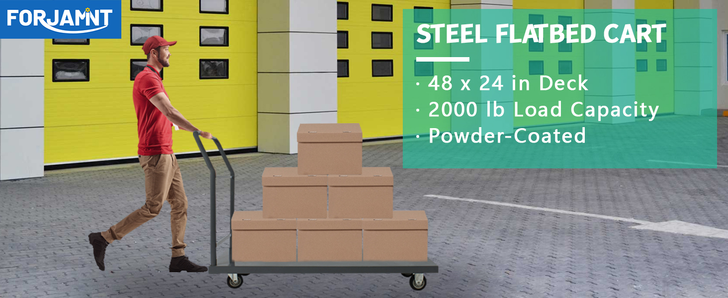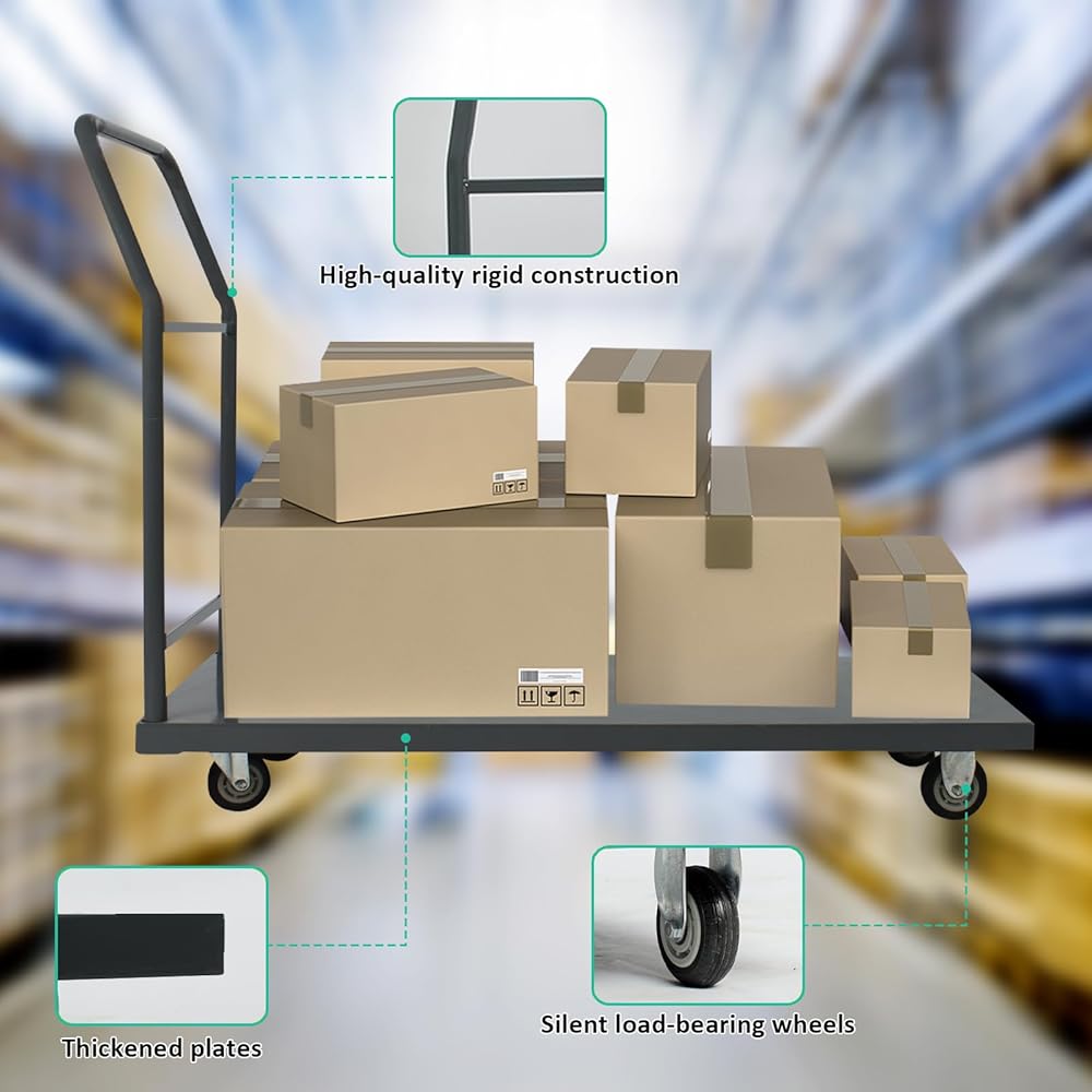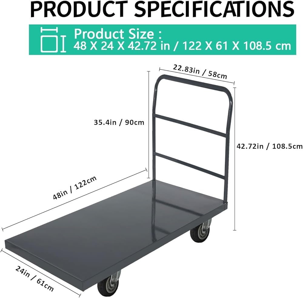 عربة مسطحة متحركة بمنصة ثقيلة، عربة دوللي 2000 رطل مسطحة مع عجلات ومقبض، 48 بوصة × 24 بوصة، عربة مسطحة من الفولاذ لنقل الأمتعة والتسوق (48 بوصة × 24 بوصة)