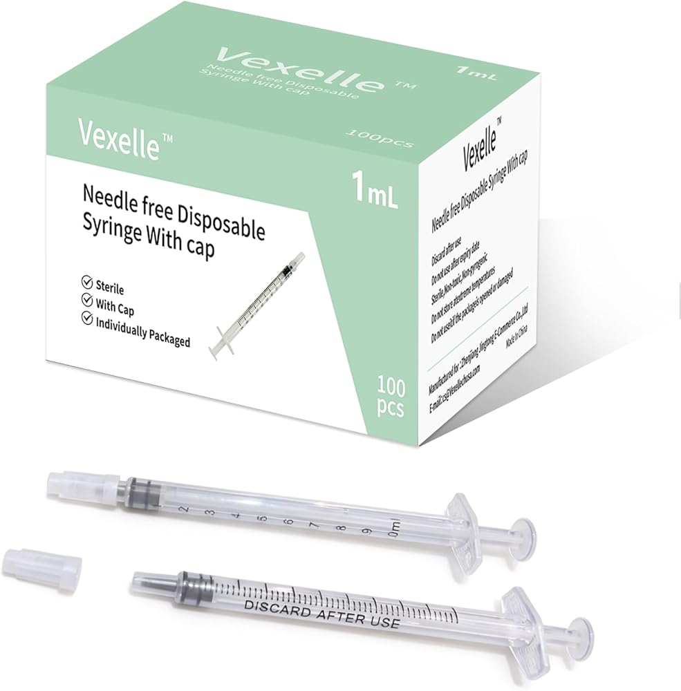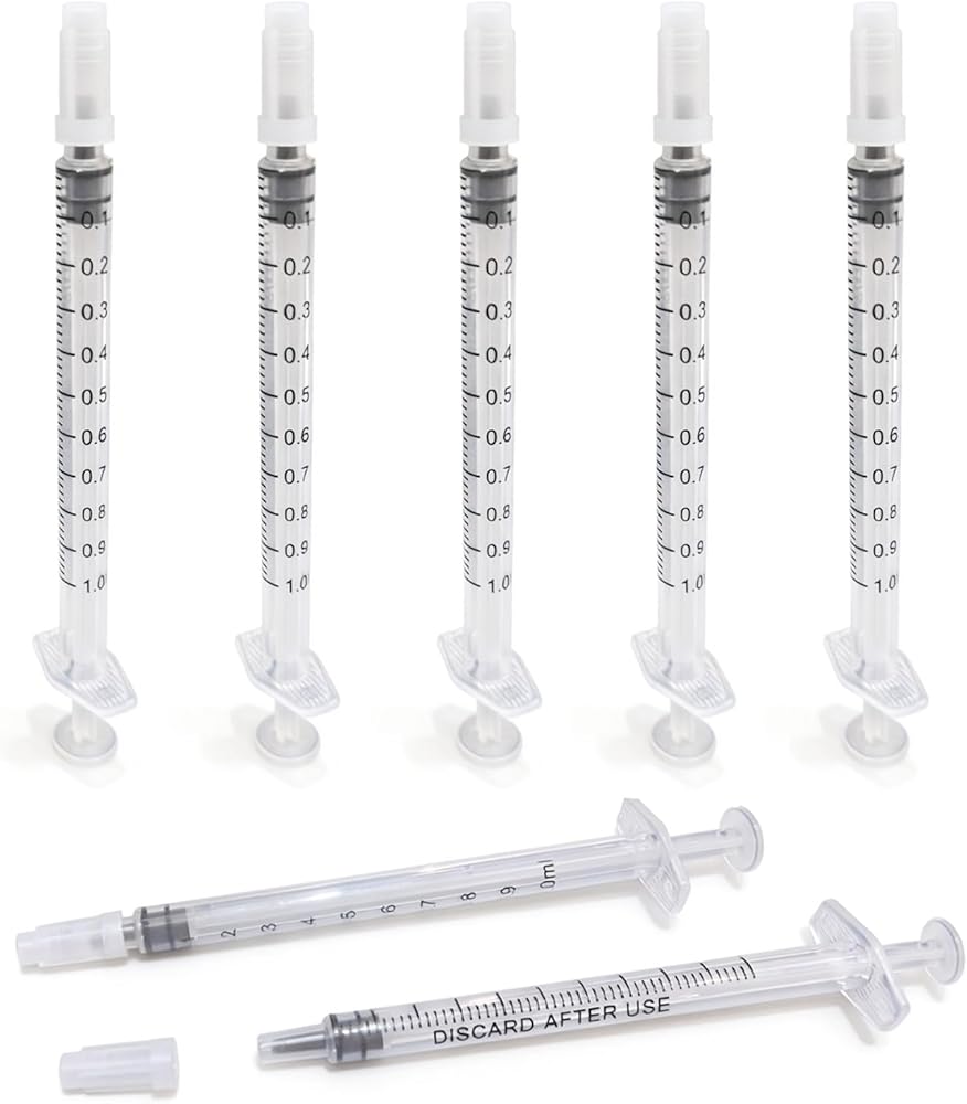 100 Pack 1ml Syringes for Liquid, Oral, Scientific Labs, Measurement, Dispensing.