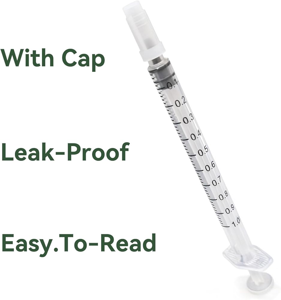 100 PCS 1ml Syringe with Cap for Liquid, Oral Syringe without Needle for Medicine Dropper, Colostrum Collector, Feeding Pets, Liquid Measuring, sterile Individually Sealed, Luer Slip