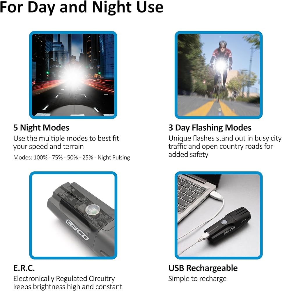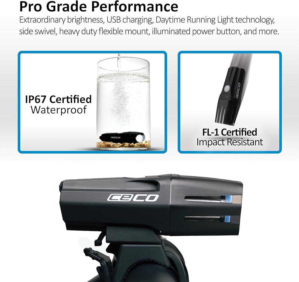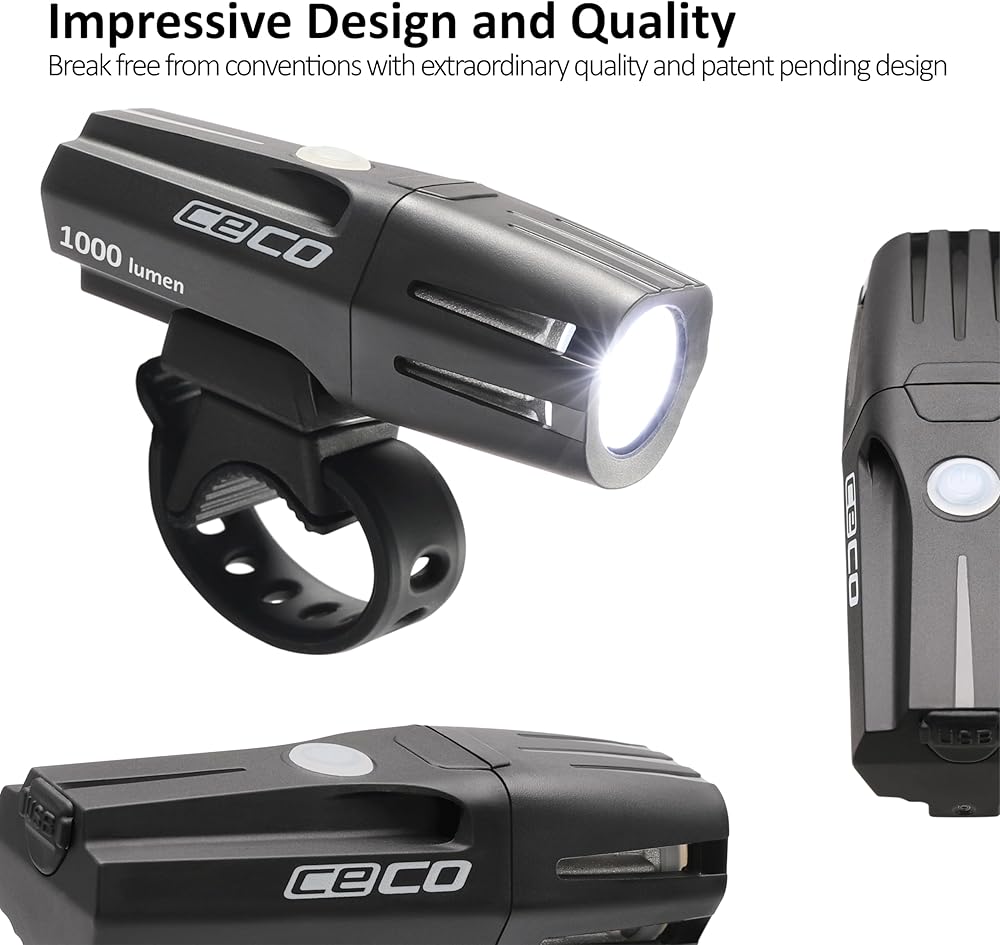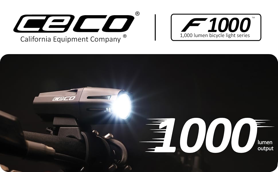 CECO USA 1000 Lumens F Series 2.0 Super Bright Bike Light Front, IP67 Waterproof, FL-1 Impact Resistant, USB Rechargeable, Great for Commuter Road Cyclist e-Bike Mountain Bikers, Beam