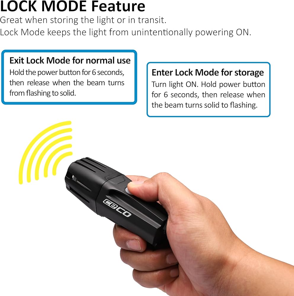 WHEN FIRST USING THE LIGHT, it will be in LOCK mode and the FLASHING LIGHT WHEN HOLDING DOWN THE POWER BUTTON IS NORMAL. The light flashes when pressing the power button to indicate Lock Mode is ON and to protect your light from unintentionally powering ON during storage or transit. To unlock, press the power button for 6 seconds then release the power button when the light turns from flashing to solid.