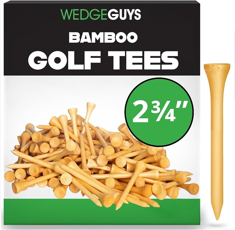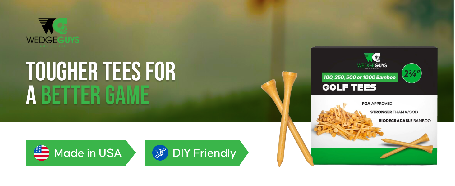 Use Less Tees and Ensure a Gentler Impact on your Golf Course, Equipment, and the Environment with the Bamboo Golf Tees by Wedge Guys According to Golf Magazine golfers use an average of 6.75 wooden tees during an 18-hole round of golf. This number not only effects your wallet, but also the cleanliness of your favorite golf course and the golf equipment used. The Wedge Guys Bamboo Golf Tees are up to 7x stronger than wood tees and are manufactured using a highly renewable resource, creating less of a dent on your wallet and the environment. Not All Bamboo Golf Tees are Created Equal!