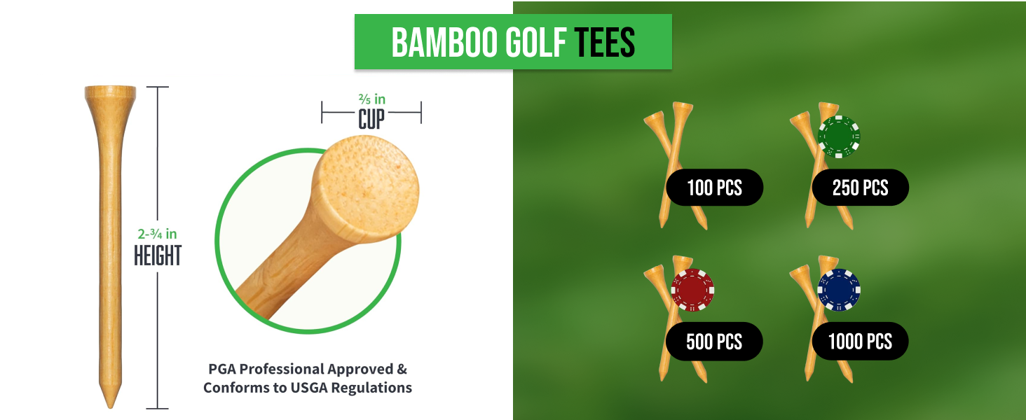 The 2-3/4 Inch high Professional Bamboo Wood Golf Tees by Wedge Guys are engineered from specific species of bamboo to ensure a stronger, longer lasting and more capable golf tee.