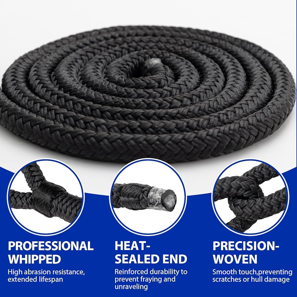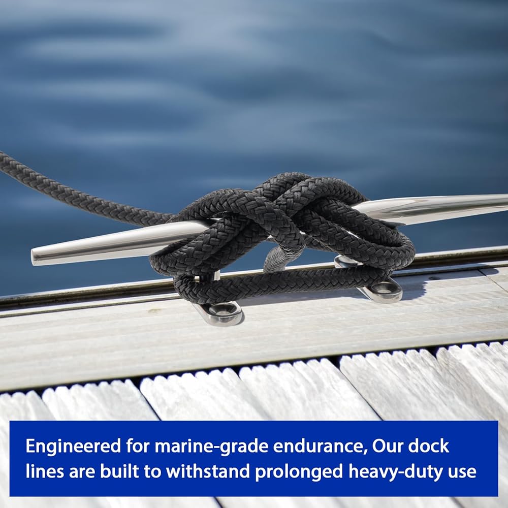 Added Tensile Strength & Heavy Load Capacity: With a remarkable tensile strength of up to 6000 lbs, 2000 lbs more than standard 1/2-inch dock ropes, and a recommended maximum working load of 1200 lbs. The robust construction makes these dock ropes for boats perfect for anchor lines, dock tie-offs, towing, boat bow lines, boat-to-boat docking, survival rope
