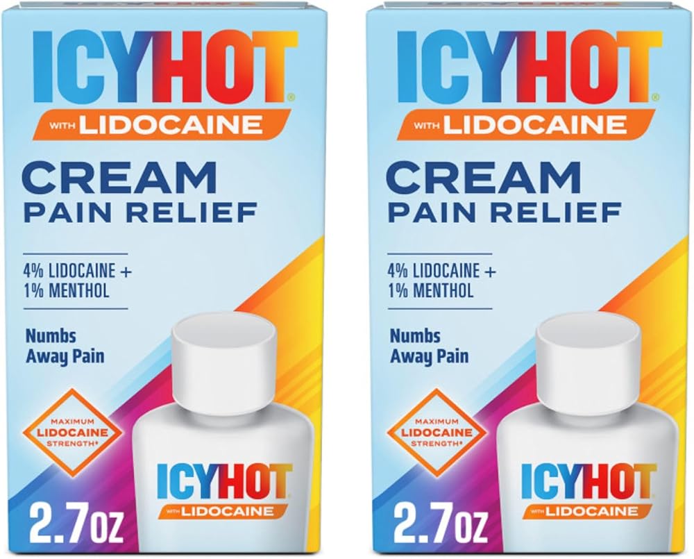 Icy Hot Lidocaine Pain Relief Cream, Numb Aggravated Nerves with Max Strength Lidocaine 4% and Menthol 1%, Fast-Acting Pain Relief for Minor Pain, Backaches, Sprains and Strains, 2.7 oz, 2 Pack