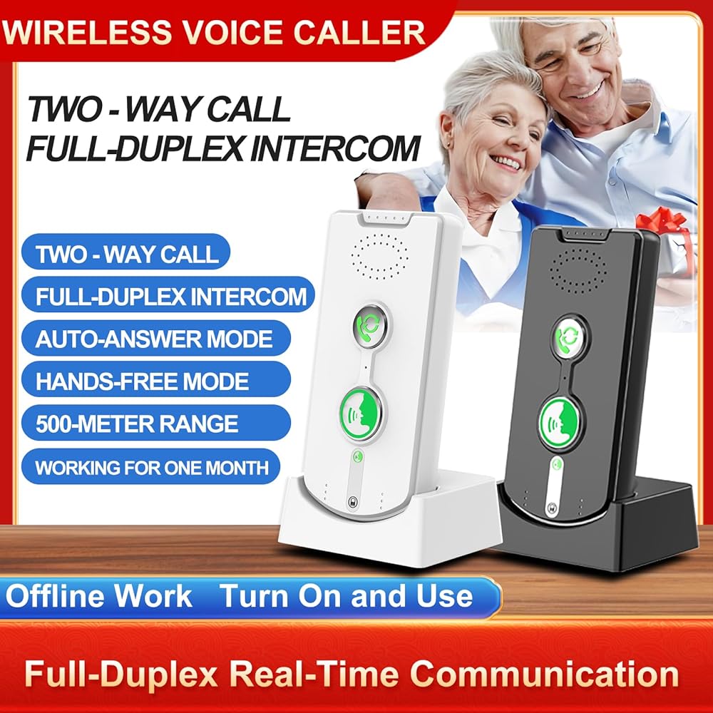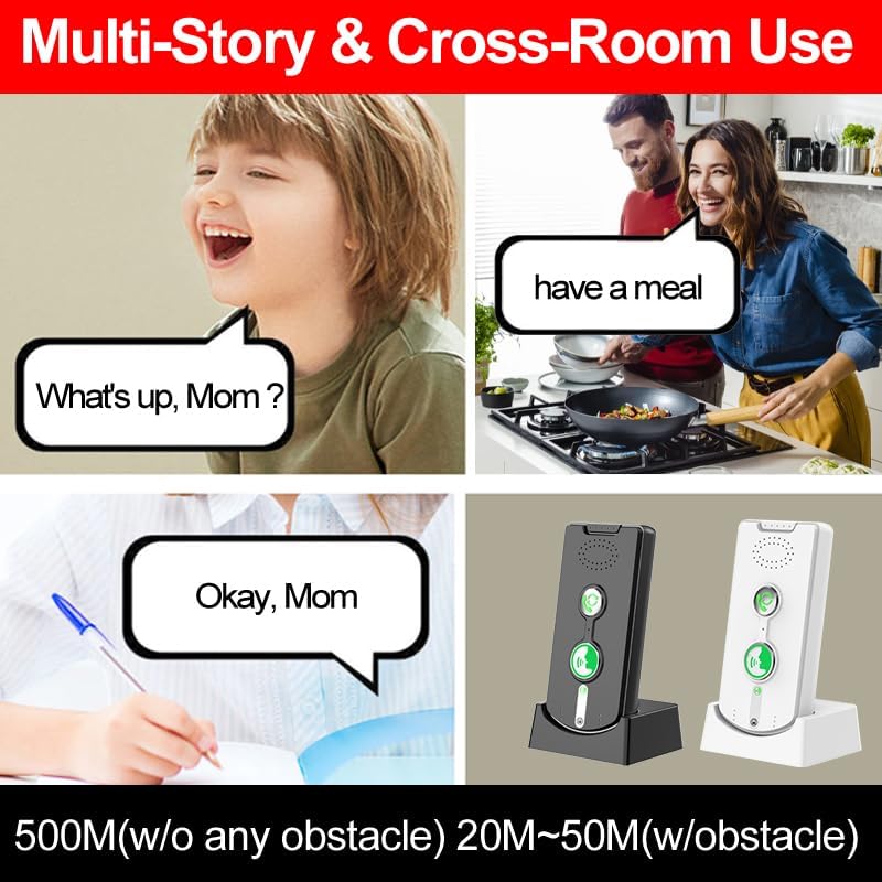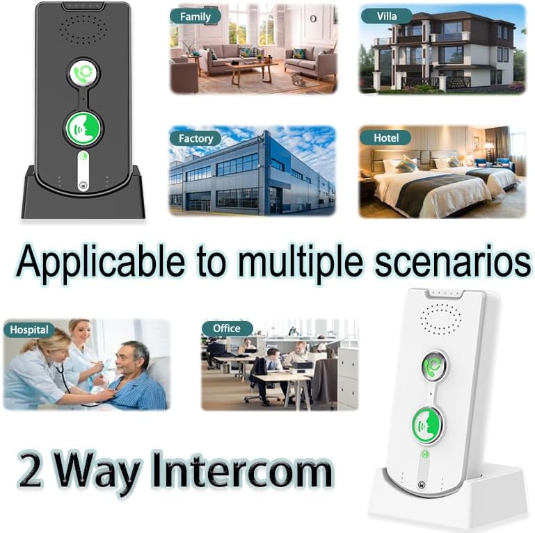 Crystal-Clear 2-Way Voice: Equipped with high-sensitivity microphones and noise-reduction technology, this intercom ensures crisp audio even in busy environments like hospitals, offices, or crowded home spaces. No more yelling or repeating—every word comes through loud and clear.Easy to Set Up & Use:No technical skills required!pair the units with one simple step (auto-pairing available), and you're ready to go. The intuitive design means even seniors or kids can use it effortlessly.