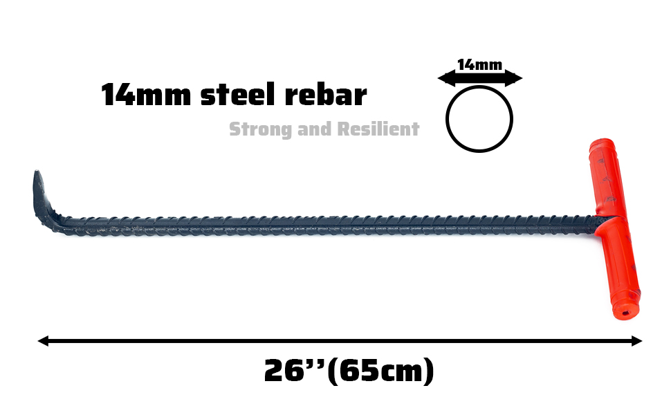 Heavy Duty 26'' (65cm) Long Manhole Hook T Hook Shape Lifting Reaching for Lifting Pulling Moving Manhole Covers, Storm Drains, Septic Tank Lids Door Pointed Head HOOK-PT-65