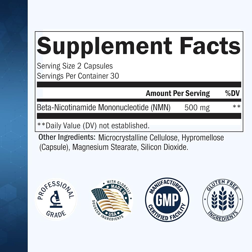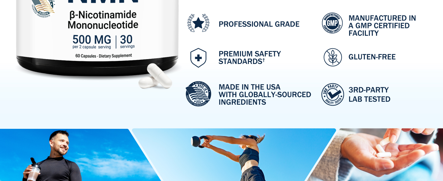 Premium Quality Standards: Our NMN capsules are manufactured in a GMP-certified facility and third-party tested for potency, efficacy and safety, allowing you peace of mind as you integrate this supplement into your daily regimen