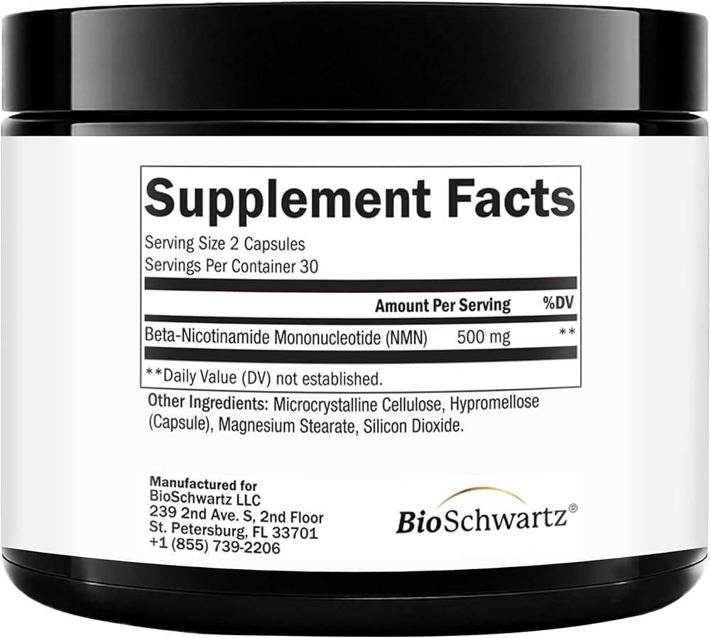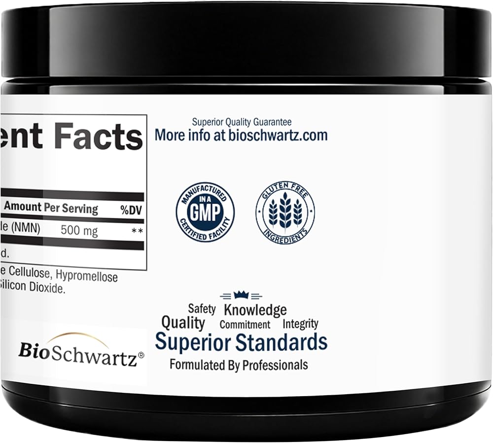 Revitalize Your Energy Levels: BioSchwartz NMN Supplement provides 500mg of NMN (Beta-Nicotinamide Mononucleotide) per serving, with 30 servings per bottle to help promote healthy daily energy levels
