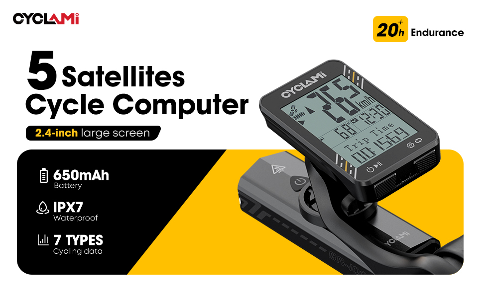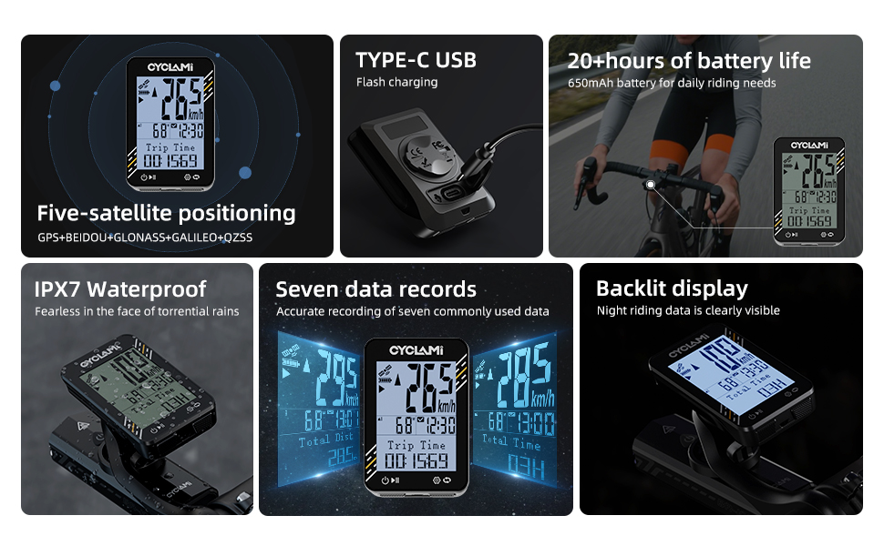 【650mAh BATTERY】Cycling computer 20hr runtime = NYC to D.C. on one charge! IPX7 waterproofing handles Midwest thunderstorms/Hurricane rains. Recharges via USB-C during coffee stops