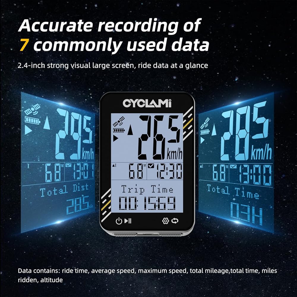 【2.4" ANTI-GLARE SCREEN】See your stats in big sun! GPS bike computer short press the left and right buttons to turn the backlight mode on/off; Finally readable without squinting!
