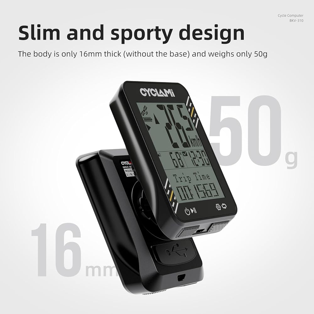 【LIGHT 50g DESIGN】Shaves weight like carbon wheels! The bike speedometer wireless thinner than your phone (16mm) & lighter than 2 Clif Bars (50g). Wind-tunnel tested to reduce drag by 11% vs. others. "Forgot it was there!"