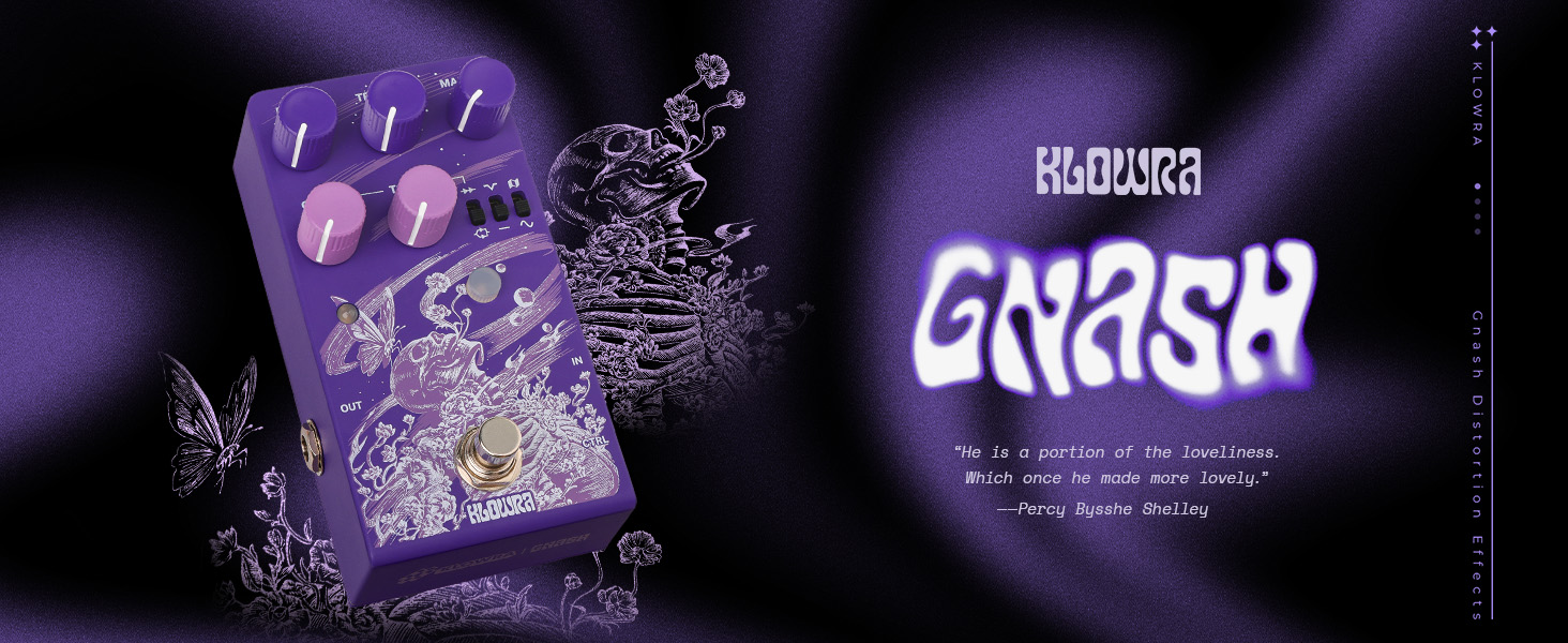Dual-Channel Distortion - Klowra Gnash dual-channel distortion pedal with switchable series or parallel routing, delivering tight, high-resolution punch, rich harmonic stacking, and extreme high-gain tones for aggressive and screaming sounds.
