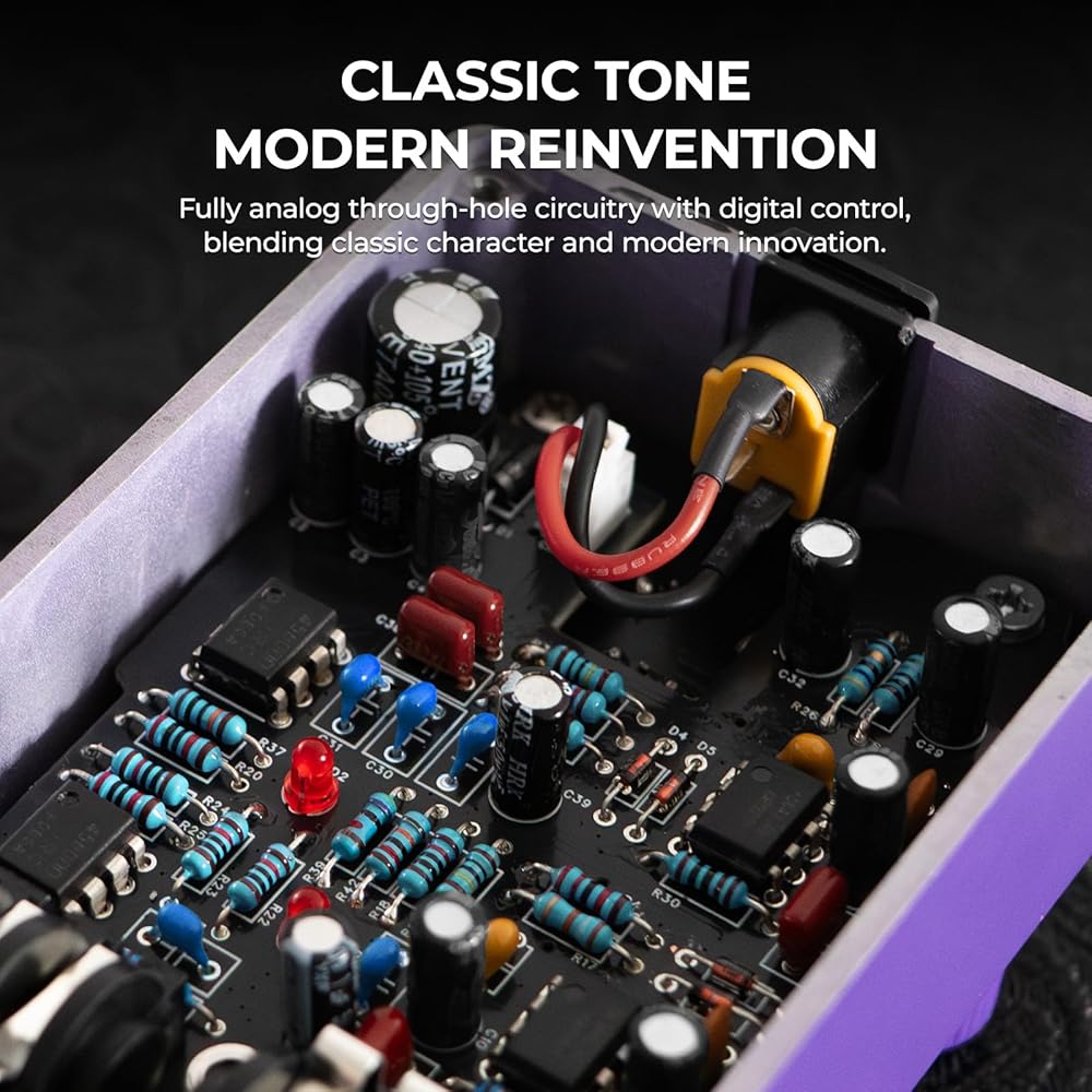 Analog Distortion Pedal with Modern Control - Fully analog through-hole construction combined with meticulously developed innovative circuitry and digital control technology delivers a modern distortion that balances classic character with creative exploration.
