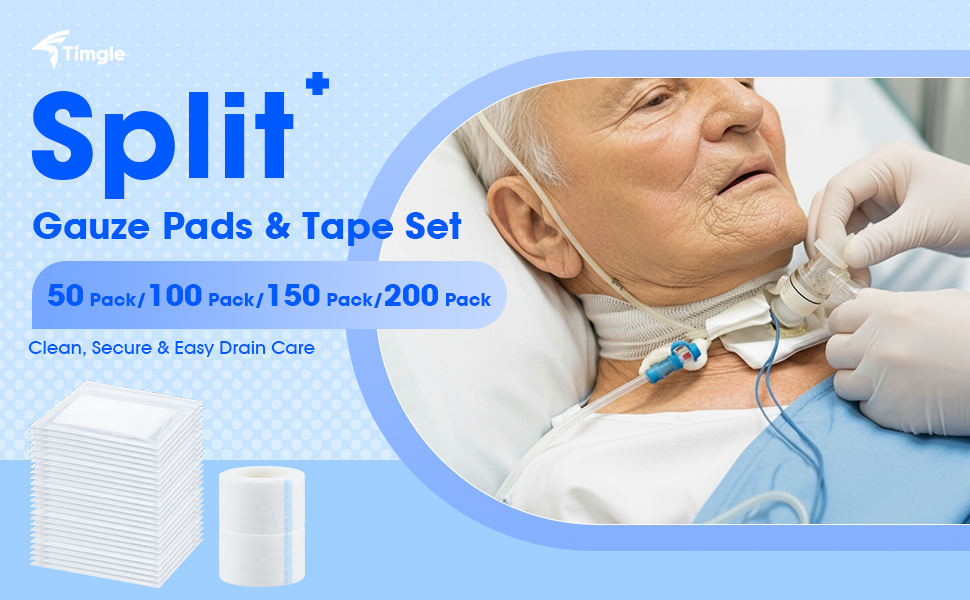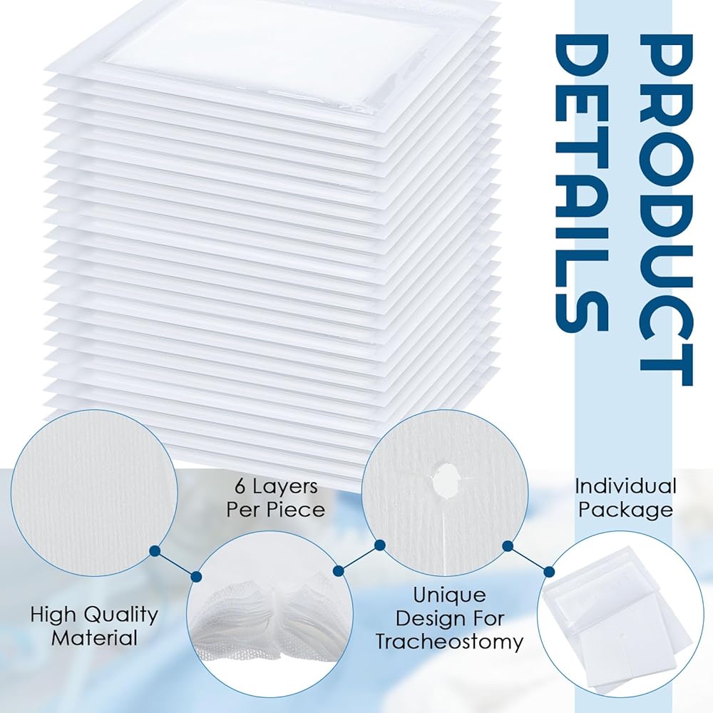What You Will Get: the package comes with 100 packs 2 x 2 inches split non woven gauze sponge, 2 pieces for each pack, 6 ply for each piece, 200 pieces in total and contains 2 rolls of bandage tape; Sufficient quantity to provide you with a long term use