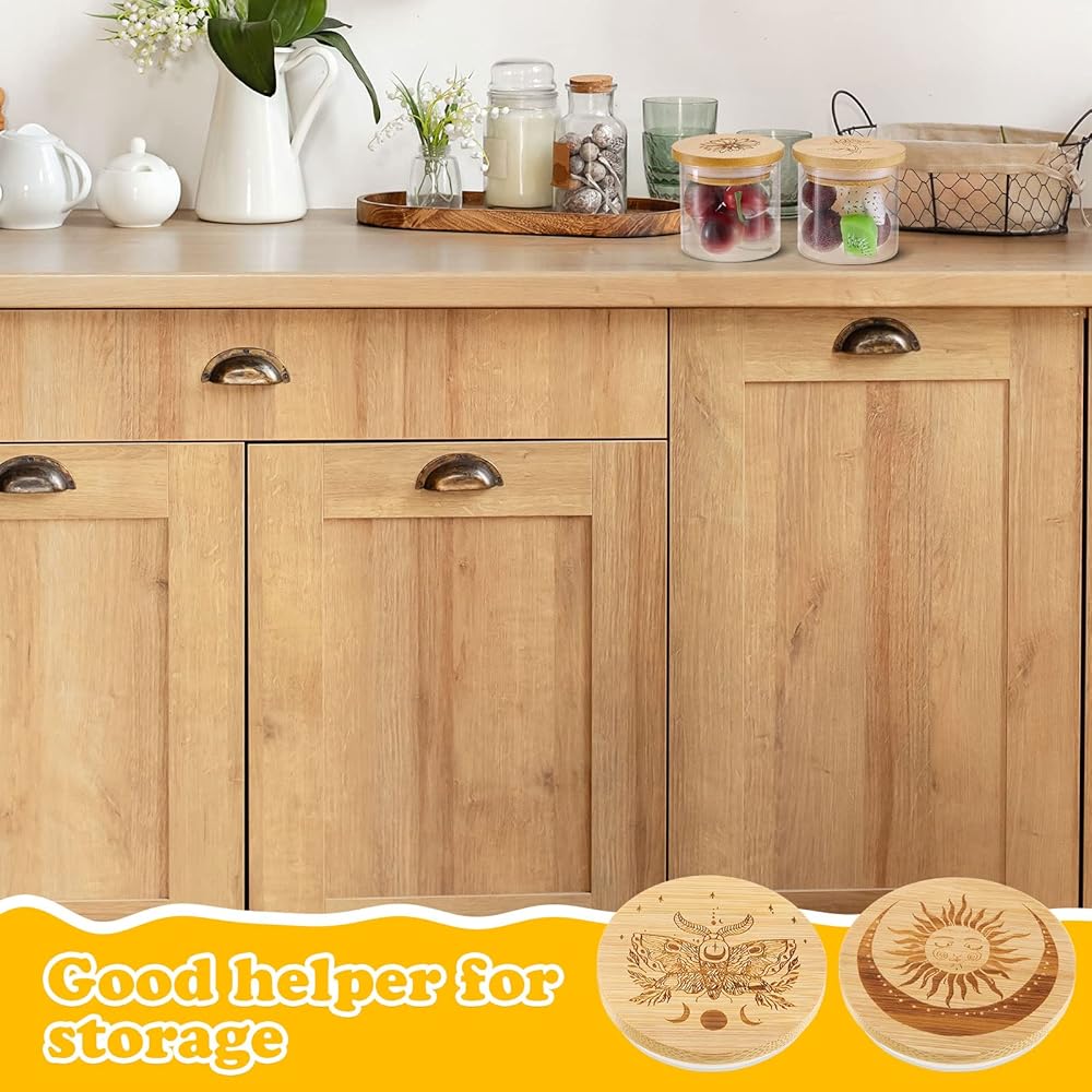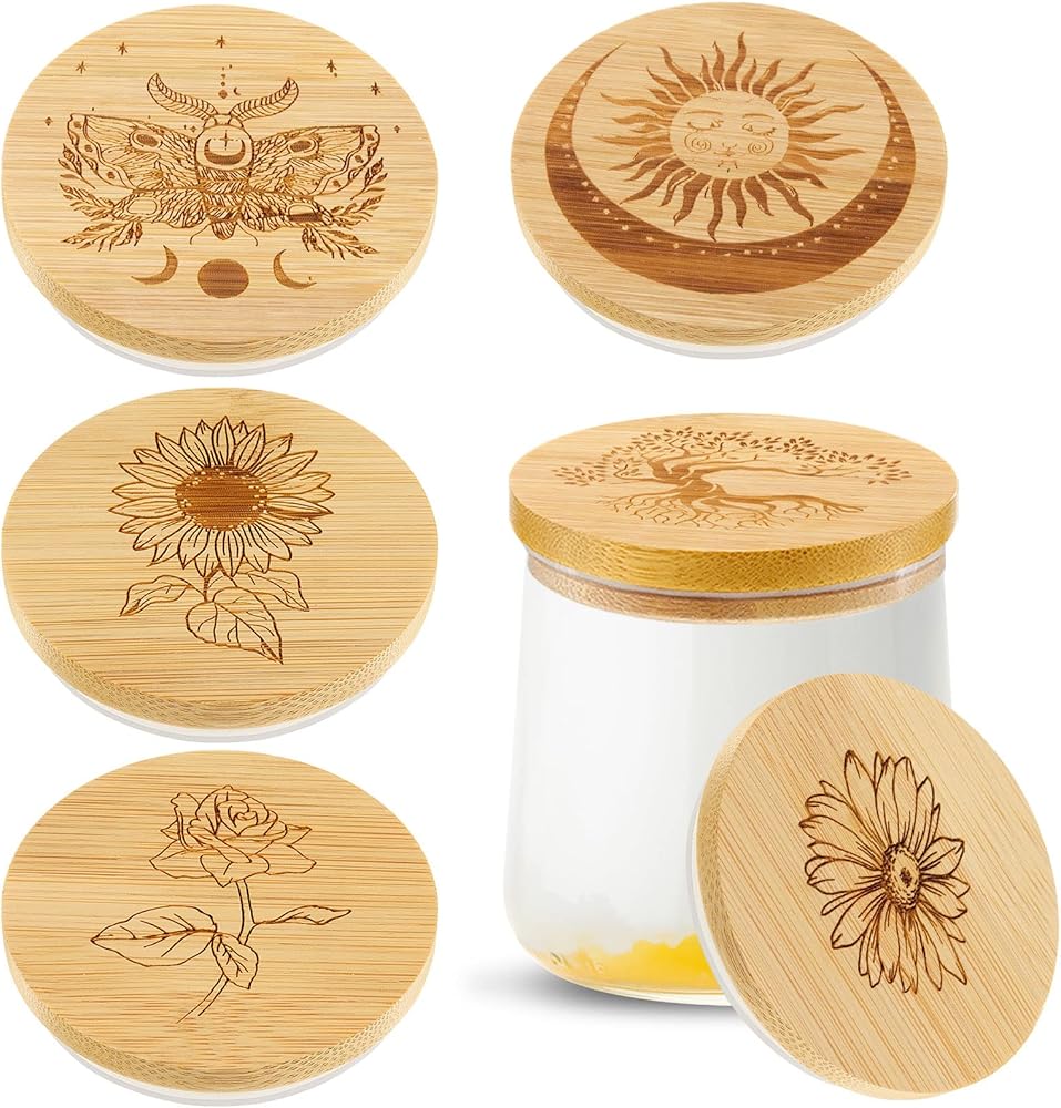 • Package Includes: you will receive 6 pieces of glass jars bamboo lids with different patterns, which are sufficient for you to use in daily life, or share some with family members and friends; Note: jars are not included in this package