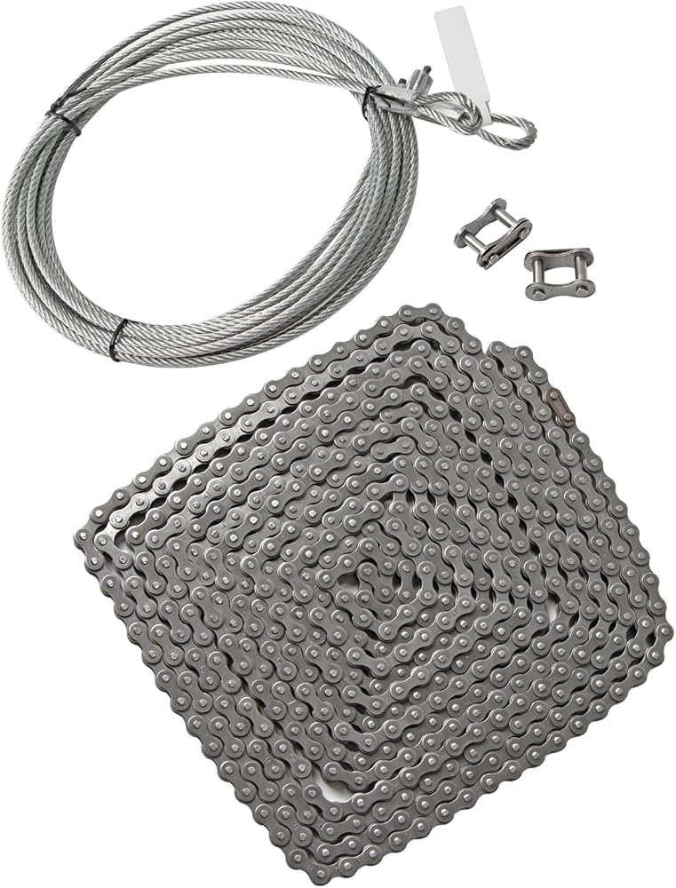 #41 20 ft Roller Chain with 2 Connecting Links and Cable for Gate Openers, Carbon Steel Door Opener Chain for Garage Overhead Gates Hanger Door Automatic Sliding Gate Replacement Karts Bike