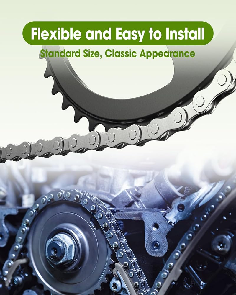 Sturdy Carbon Steel Material and Pre-stretching Process: The chain is made of sturdy solid carbon steel material, which has undergone special heat treatment and has extremely high wear resistance and tensile strength. It can withstand harsh environments, resist corrosion and is not easy to break. Unique pre-tensioning and pre-stressing design effectively prevents natural elongation during use, and does not require frequent adjustments after installation, making it worry free and durable