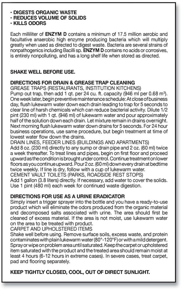 Big D Ind Enzym D Digester Deodorant, Lemon Fragrance, 32 Ounce Bottle -- 12 per case.