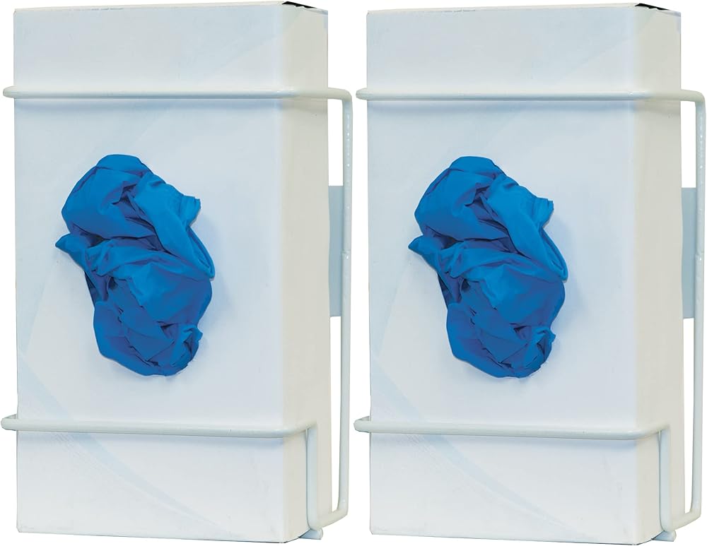Bowman Dispensers Single Glove Box Dispenser, White Coated Wire, Non-Divided, Wall Attachment, Made in USA, Pack of Two, 3.75 Inch L x 5.67 Inch W x 8.16 Inch H