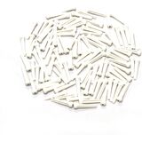 Overall length: 30mm/1.18inch; Shaft length: 25mm/0.98inch; Shaft taper width: 5mm to 3mm/0.2inch to 0.12inch; Head width: 7mm/0.28inch; Quantity: 100pcs guitar bridge pins.