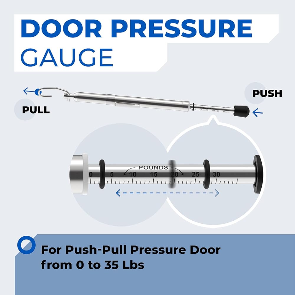 Range: Equipped with a precise measurement range from 0 to 35 pounds, door pressure gauge covers all standard door force requirements. The durable analog dial provides consistent and repeatable results, while the protective plastic tube safeguards the gauge during transport and daily use, ensuring long-term accuracy and reliability.