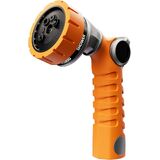 • HEAVY-DUTY GARDEN HOSE NOZZLE: The nozzle gun body is constructed with zinc-alloy material, solid & robust to resist rust, corrosion and wear. The shock resistant rubberized bezel dial can enhance durability & flexibility and withstand hard impacts & heavy force in daily drops and shocks. It is much stronger, more durable and long-lasting than plastic water nozzles.