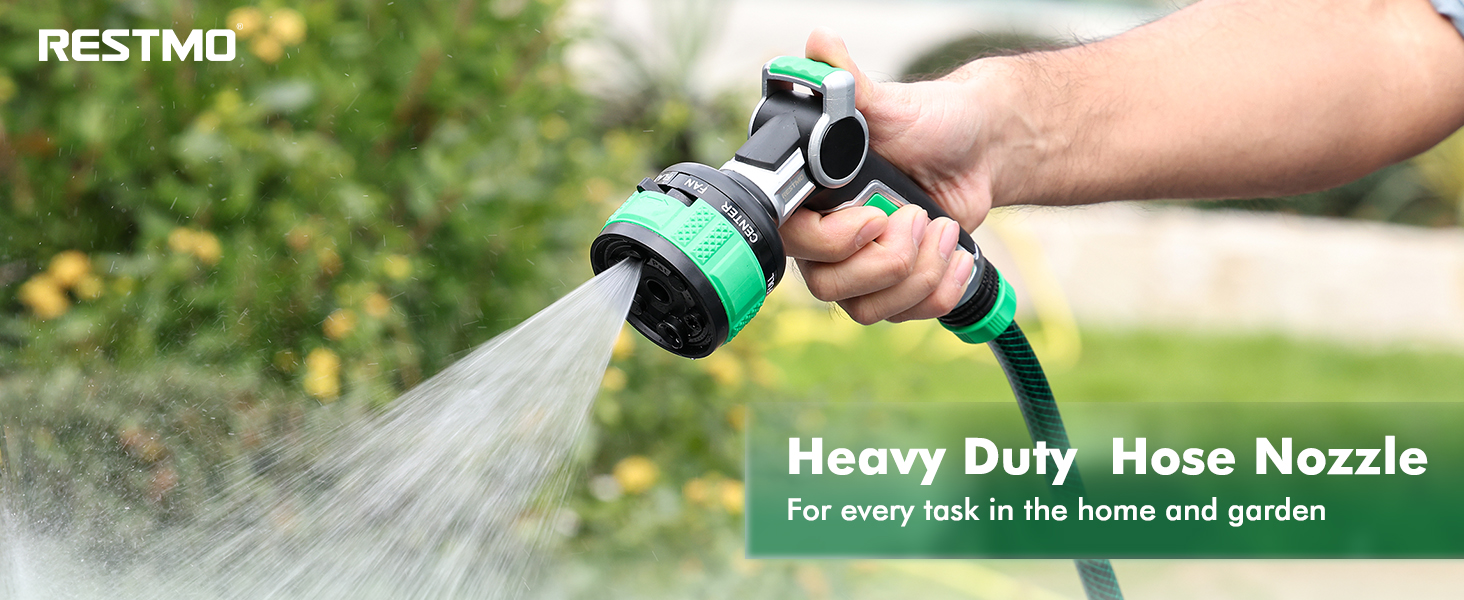 RESTMO Heavy Duty Garden Hose Nozzle, 9 Spray Patterns Water Hose Nozzle with Adjustable Spray Width & 2-Way Direction Control, High Pressure Hand Sprayer for Plants, Lawn, Car & Pet Washing