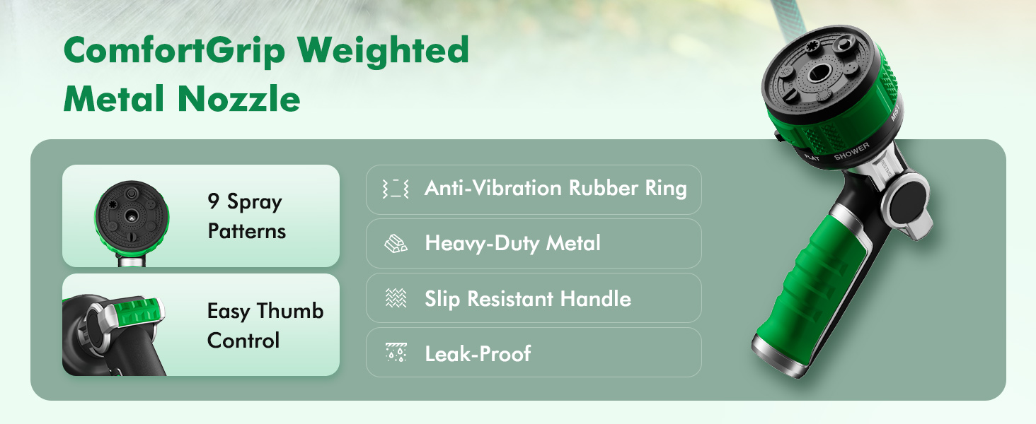 All-Metal Core Construction: Built with a heavy-duty all-metal core and wrapped in a non-slip TPR rubber coating, this nozzle is engineered to withstand drops, bangs, and year-round outdoor use. Unlike all-plastic nozzles that crack, this one delivers reliable, season-after-season performance.