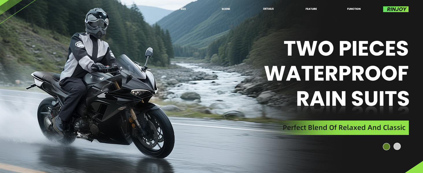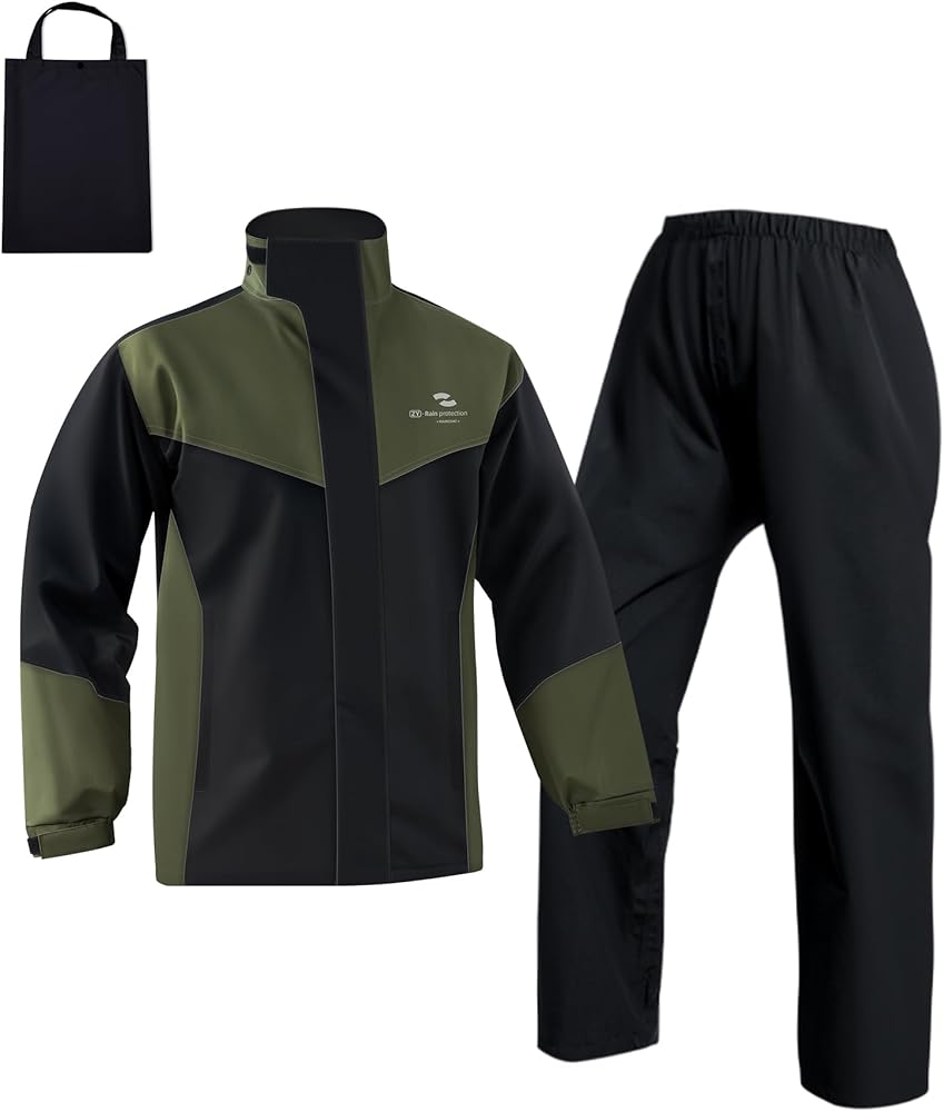 Material: RINJOY rain suits is made of high density and breathable polyester with PVC water-repellent coating.Keep skin breathe freely.This rain suit offers a breathable and comfortable wear experience in any kinds of weather condition