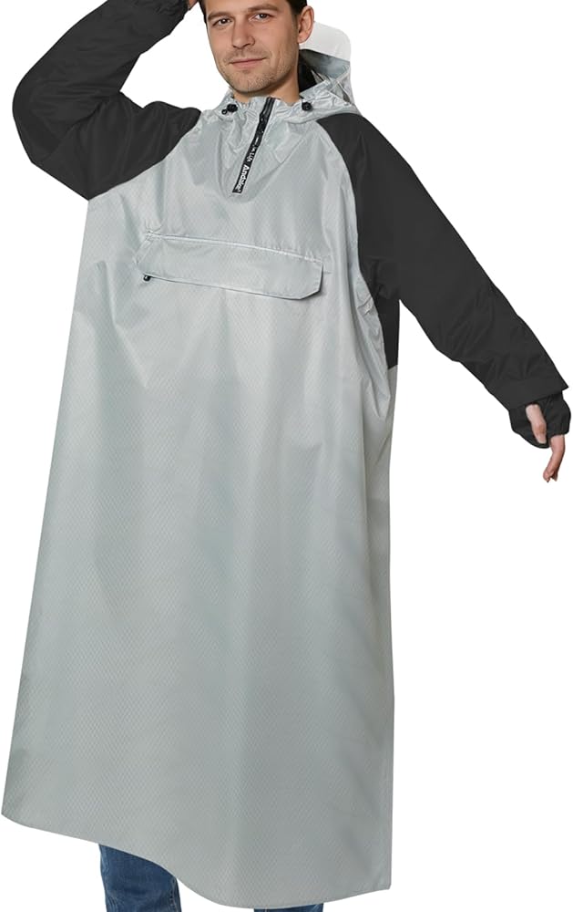 [Superior Waterproof & Breathable Protection]: Crafted with high-performance waterproof and breathable fabric, featuring fully taped seams to seal out water. This panchos rain adult effectively shields you from heavy downpours while remaining dry inside. The advanced membrane technology allows moisture to escape quickly, eliminating the sticky, stuffy feeling of traditional raincoats. This waterproof jacket ensures comfort for commuting or hiking in all conditions