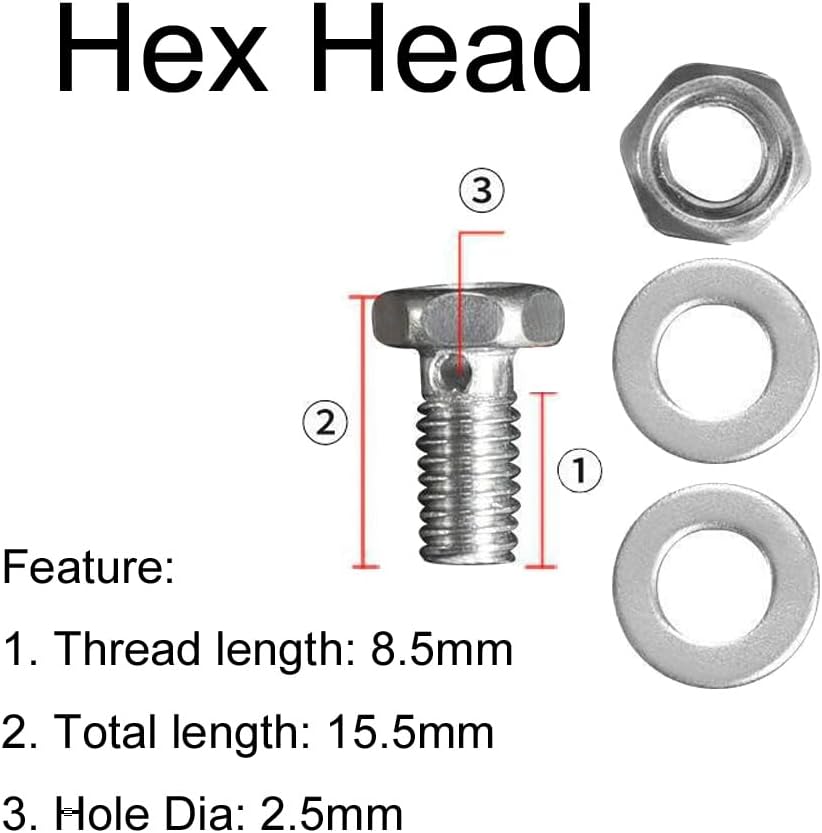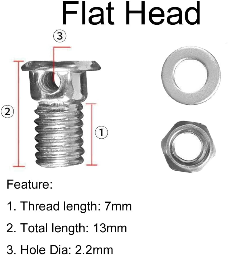 1. Sizes: There are total 3 kinds of Bicycle Cable Regulator Clamp in one set to meet your any needs (Round Head + Flat Head +Hexagon Head)