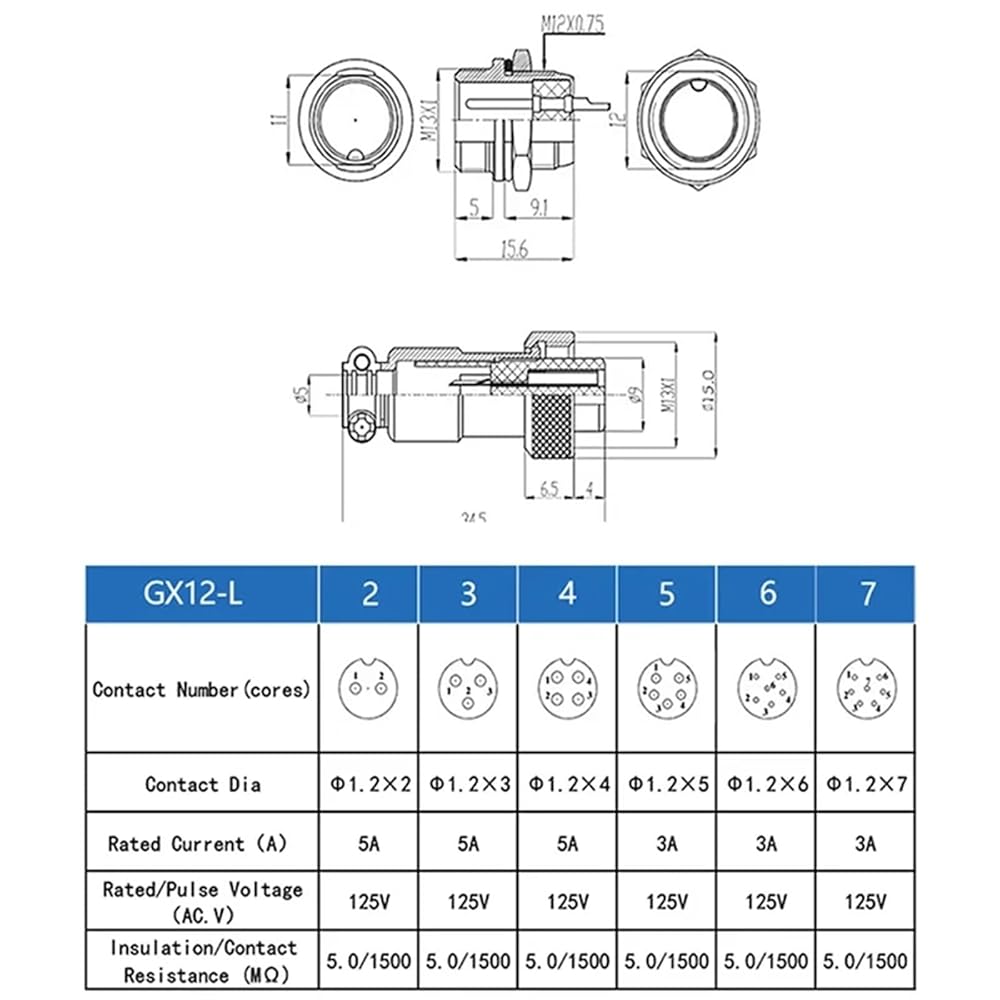 5Set GX12 Nut/Docking Type Male&Female Connector Screw Power SocketPlug Terminal 234/5/6/7 Pin Cable Pluggable Port
