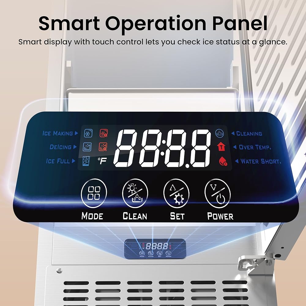 Auto-Cleaning Cycle: The ice maker commercial has a built-in auto-cleaning cycle, activate it to thoroughly clean internal parts without disassembly. We also include a complimentary filter; paired with this function, it reduces system impurities, enhancing ice quality. This combo saves maintenance time while keeping ice in better condition.
