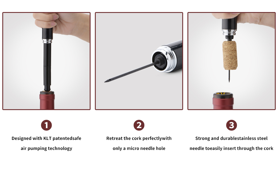 Efficient and Convenient : The IPEROT corkscrew wine opener is newly designed for simplicity, convenience, and lightweight use. To use, simply pierce the wine cork with the needle, hold the handle, and pump up and down 3-7 times to remove the cork without damaging it or the bottle. This makes it ideal for the elderly, women, and those with weak hands, as it produces no wood chips