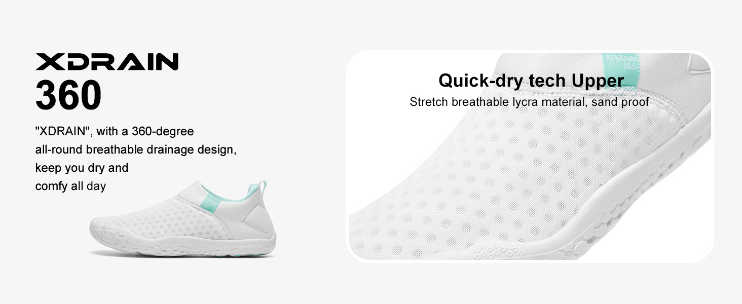 【Quick-dry Tech Upper】: The water shoes use quick-dry tech upper to bring you the ultimate experience, and provide the ultimate support and comfort where you need it most.