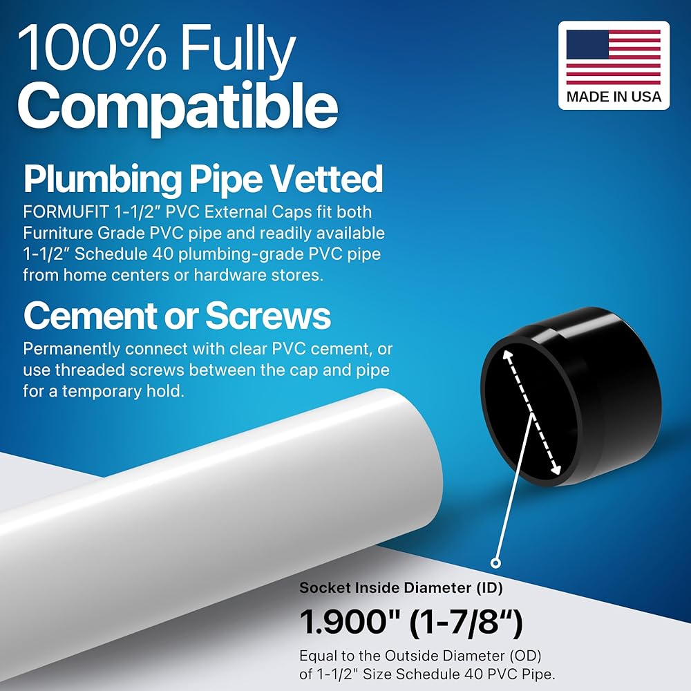 FORMUFIT F112EEC-BK-10 1-1/2" Furniture Grade External Flat End Cap in Black, 1.9" ID, PVC (Pack of 10)