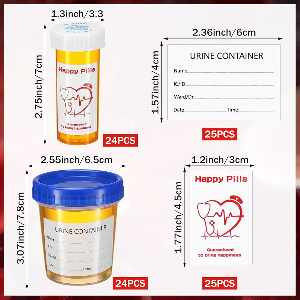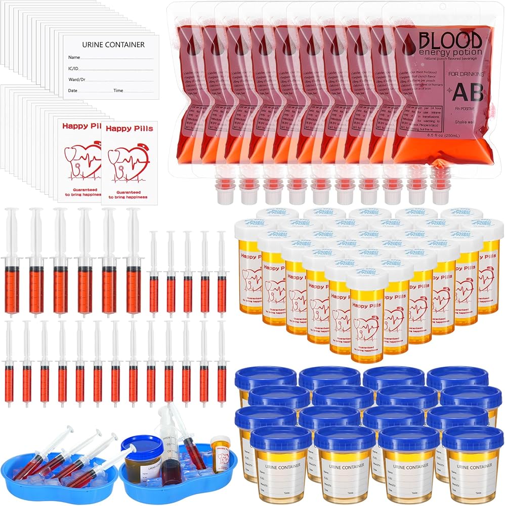 Nursing Graduation Party Supplies Set Iv Blood Bags Urine Cups Plastic Syringe Medicine Bottles with Caps for Nurse Doctors' Day Congrats Grad Party Decorations Serve 25